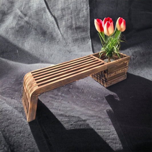6ft Wood Bench with Wooden Planter Flowerbed Real Wood