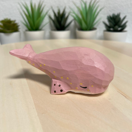 YEEYAYA Pink Whale 4.2“ Wood sculpture Hand Carved Wood Figurine woodcarving statue home decor room decor Aquatic animal Marine