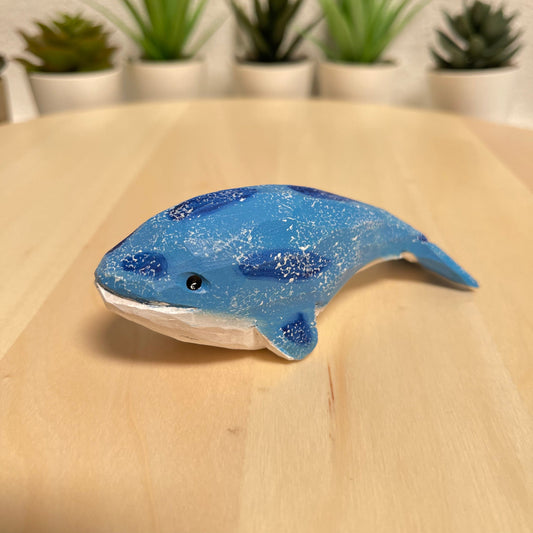 YEEYAYA dark blue Whale 4“ Wood sculpture Hand Carved Wood Figurine woodcarving statue home decor room decor Aquatic animal Marine animals